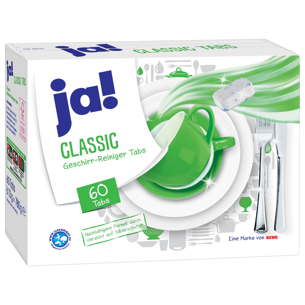 „ja! Classic“ indaplovių tabletės – patikimas ir ekonomiškas sprendimas kasdieniam indų plovimui. Sukurtos taip, kad užtikrintų švarius, blizgančius indus ir veiksmingą riebalų bei nešvarumų pašalinimą kiekvieno ciklo metu.