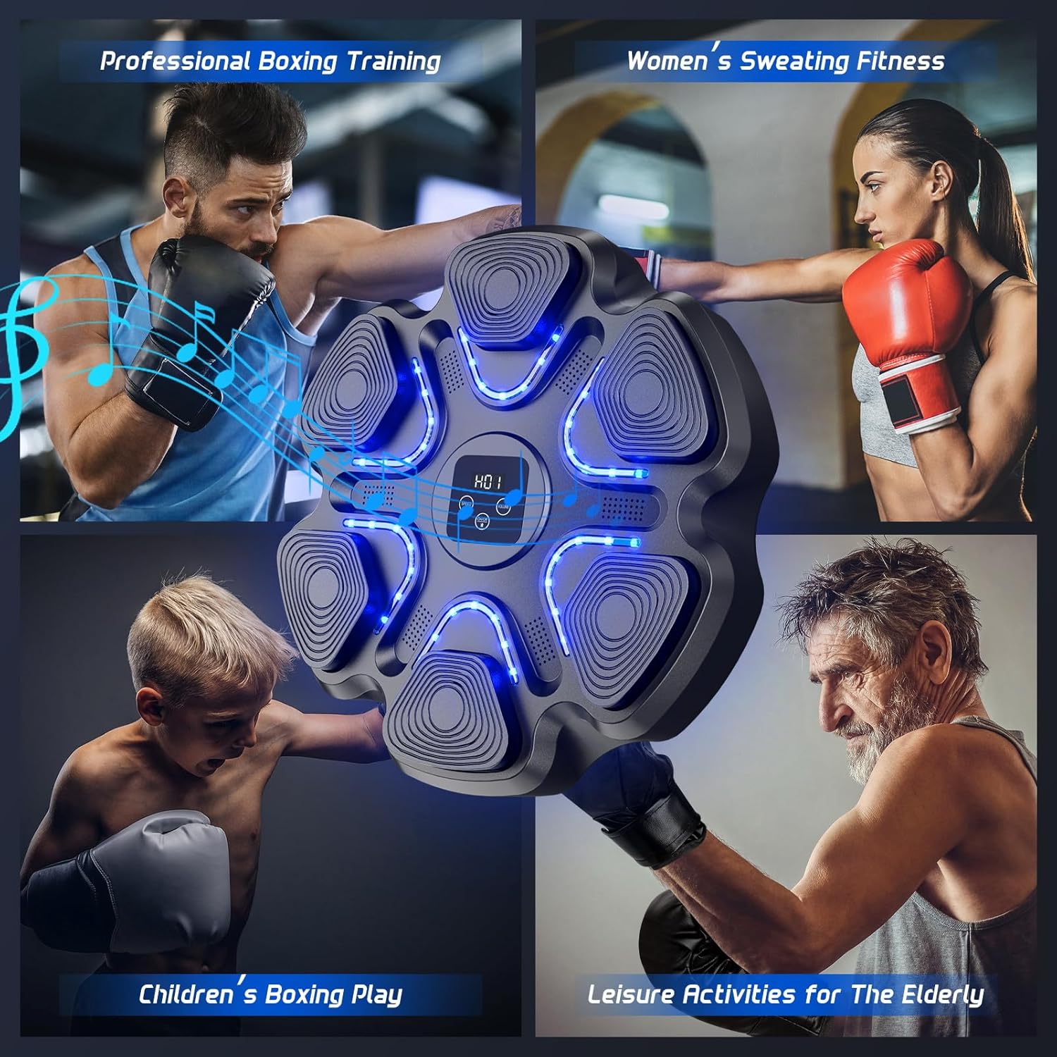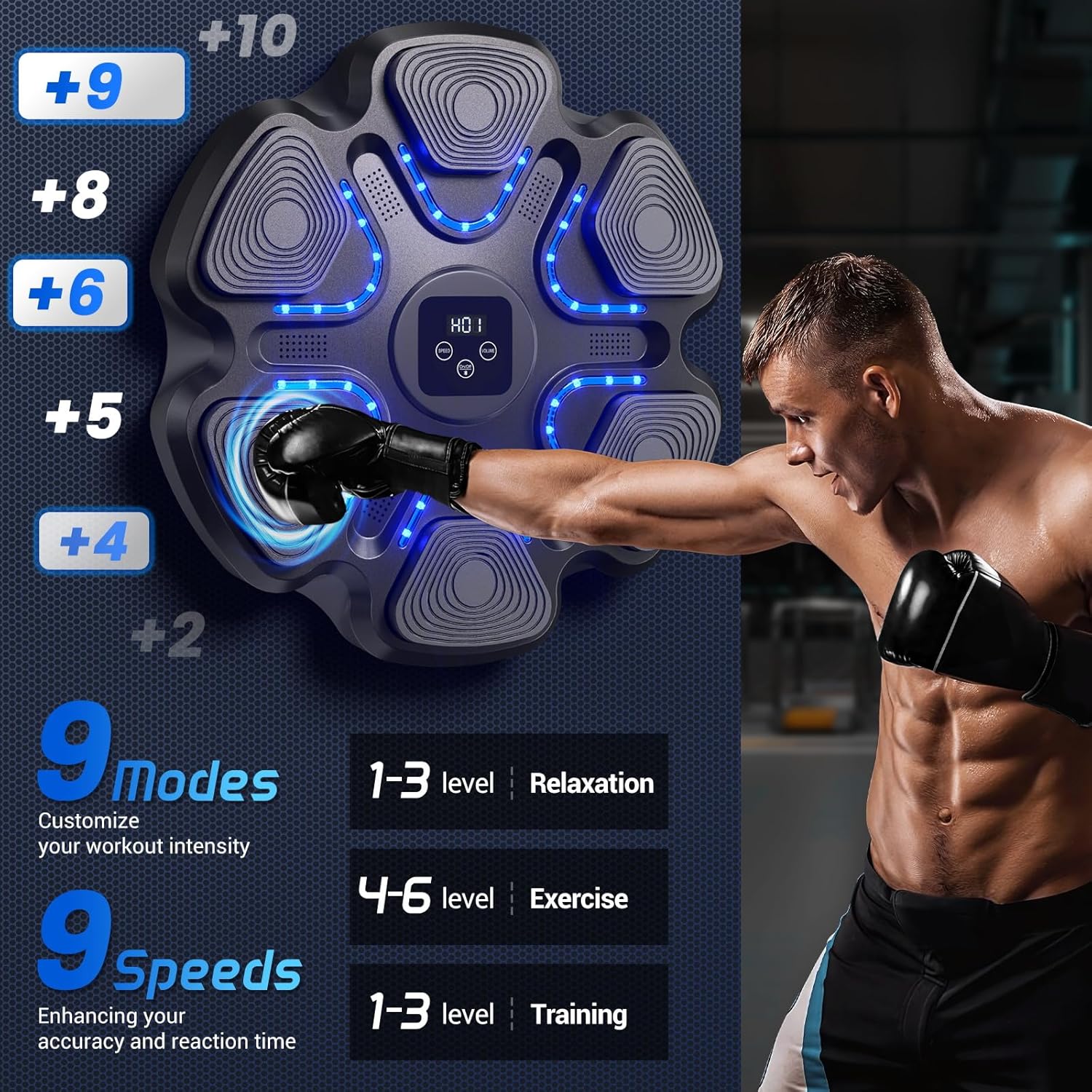 Išmanus sieninis bokso treniruoklis su LED taikiniais, Bluetooth garsu ir automatinio skaičiavimo funkcija. Puikiai tinka greičio, reakcijos ir ištvermės treniruotėms namuose.